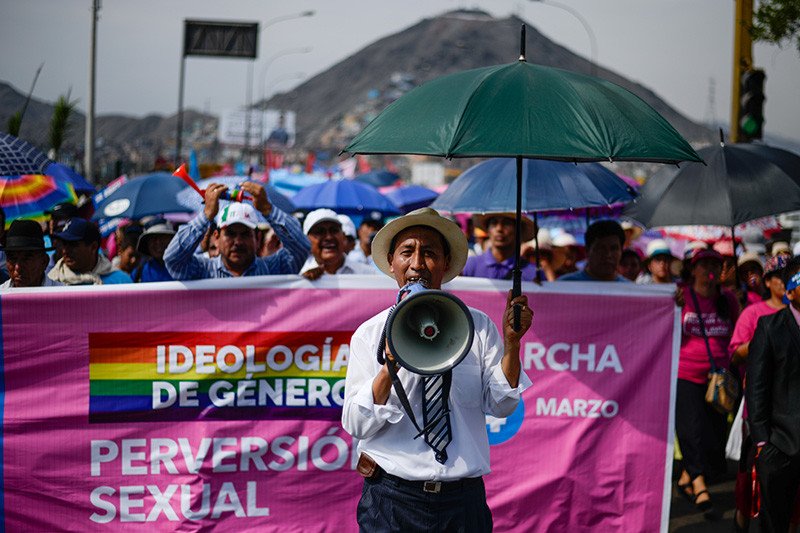 De acuerdo con el diario peruano 'La República', los manifestantes consideran que la propuesta, liderada por el Ministerio de Educación, busca "homosexualizar a la niñez" y aseguran que la ideología de género "desnaturaliza" los conceptos de hombre y mujer.