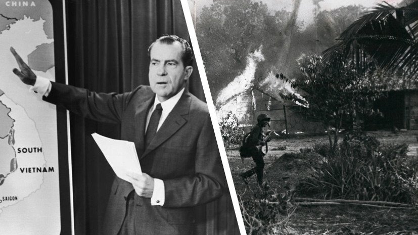 Como Donald Trump, el presidente Richard Nixon ganó la confianza de los estadounidenses en la campaña electoral con la promesa de terminar la muy impopular Guerra de Vietnam. Antes de su elección en 1968, los medios comenzaron a difundir mensajes sobre el "plan secreto de Nixon" para finalizar el conflicto. Sin embargo, en 1970 hubo un golpe de Estado en Camboya con el fin de debilitar la influencia de los comunistas, lo que llevó a la invasión de las tropas de Vietnam del Norte.
