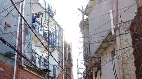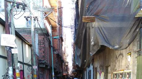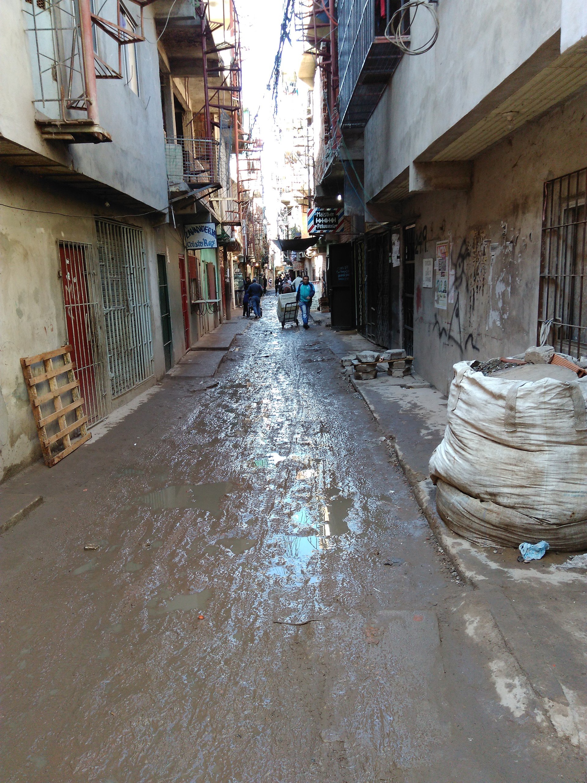 El pasillo de entrada al San Martín parece un portal hacia el medioevo, en 2017. Las calles de tierra, las inseguras construcciones de hasta cuatro pisos, los tendidos eléctricos improvisados y los sistemas cloacales artesanales generan una sola conclusión: el Estado aquí es inexistente. Todo lo que puede observarse fue instalado por los vecinos, organizados. El sonido de los martillos es incesante, difícilmente se encuentre un momento en que los residentes no estén levantando emprendimientos edilicios. Ladrillos, carretillas y herramientas se pasan de manos constantemente, y se escuchan frases en idioma guaraní. "La mayoría acá son paraguayos, bolivianos y peruanos", comenta Guillermo, de 49 años, quien llegó desde Lima, Perú. En efecto, dentro de este rincón de miseria, en el corazón de Buenos Aires, hay poca presencia de argentinos.