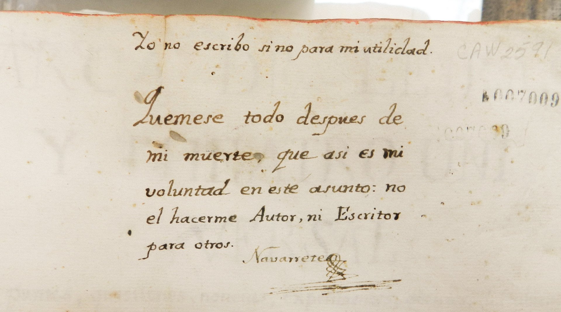 'Arca de letras y teatro universal', catalogada como un intento de enciclopedia, escrita por Fray Juan Antonio Navarrete, es otra de las sobrevivientes a sus propios designios, pues en sus primeras páginas se lee: "Yo no escribo sino para mi utilidad, quémese todo después de mi muerte, que así es mi voluntad de este asunto, no he de ser lector ni escritor para otros".