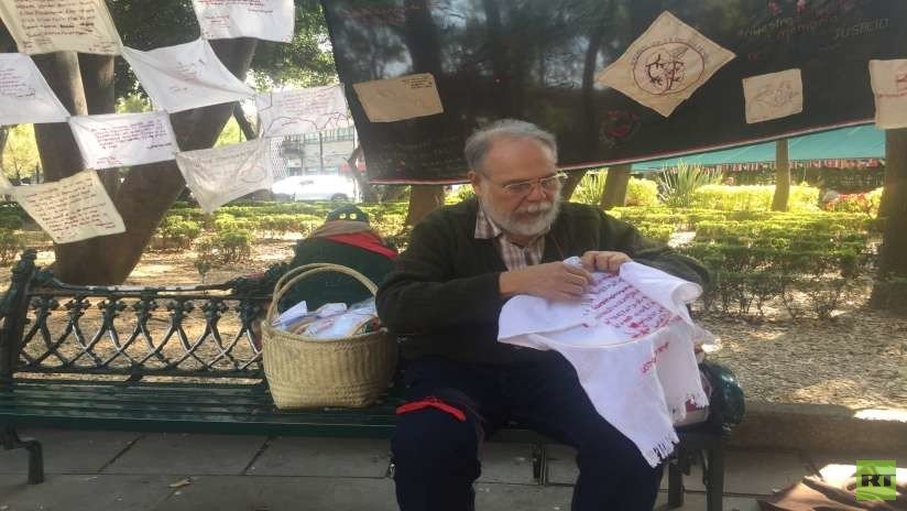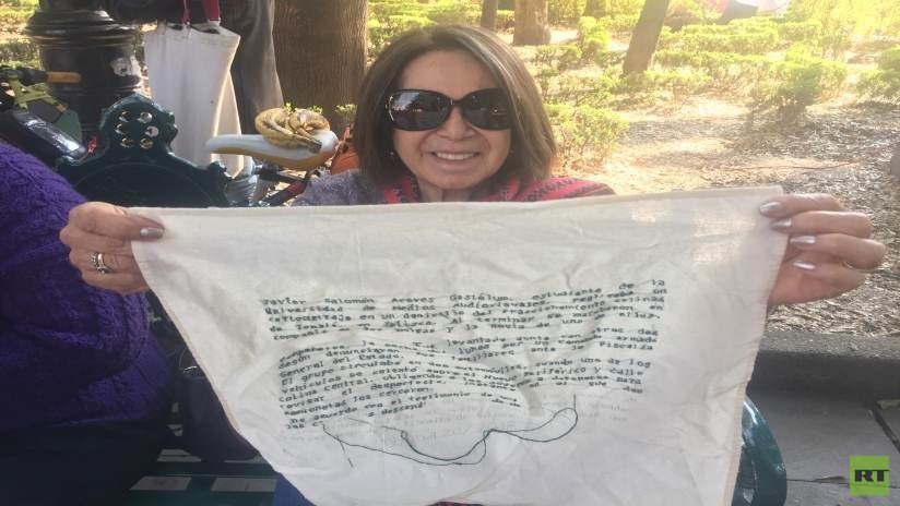 "Con vida se los llevaron, con vida los queremos", dice el bordado de 'Poli', dedicado al estudiante Jorge Antonio Tizapa Legideño, desaparecido a los 19 años. Como muchas personas, 'Poli' no es de México, sino de Córdoba, Argentina, pero en solidaridad con la causa contribuyó con una parte del memorial dedicado a los jóvenes normalistas.
