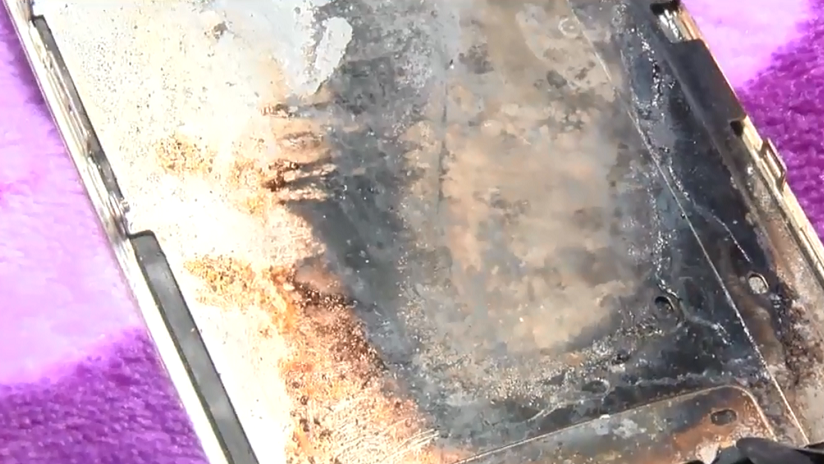 La niña no resultó herida por la explosión pero el teléfono defectuoso hizo una quemadura y agujeros a la manta.