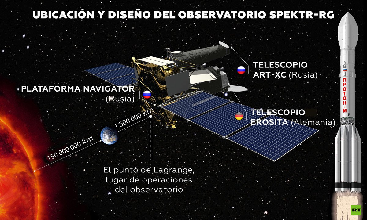 EL telescopio fue lanzado el 13 de julio de 2019 como parte de la misión espacial ruso-alemana Spektr-RG, que también incluye el telescopio ruso ART-XC. El 21 de octubre, eROSITA completó su viaje de 1,5 millones de kilómetros hasta el segundo punto Lagrange (L2) del sistema Tierra-Sol (donde las fuerzas gravitacionales de dos objetos grandes, en este caso el Sol y la Tierra, se equilibran entre sí).