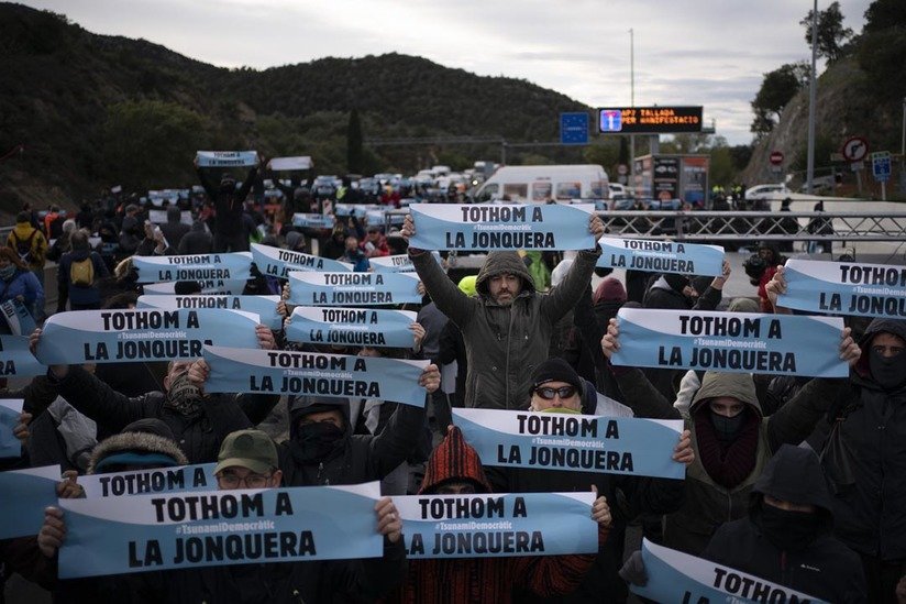 Cientos de personas participaron en la acción de protesta, convocada por la plataforma Tsunami Democratic en respuesta a la sentencia judicial contra los líderes del proceso soberanista. Los manifestantes, que crearon un campamento improvisado donde pasaron la noche del lunes, han interrumpido la circulación sobre las 9:00 horas de la mañana de lunes, dando lugar a que se formaran largos atascos en la zona.