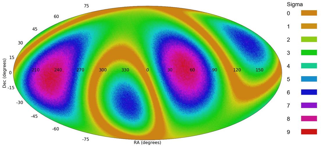 Las diferencias en la asimetría en diferentes partes del universo son consistentes con un patrón cuadrupolo, es decir, el universo no estaba girando alrededor de un solo eje, sino cuatro ejes en una alineación compleja.