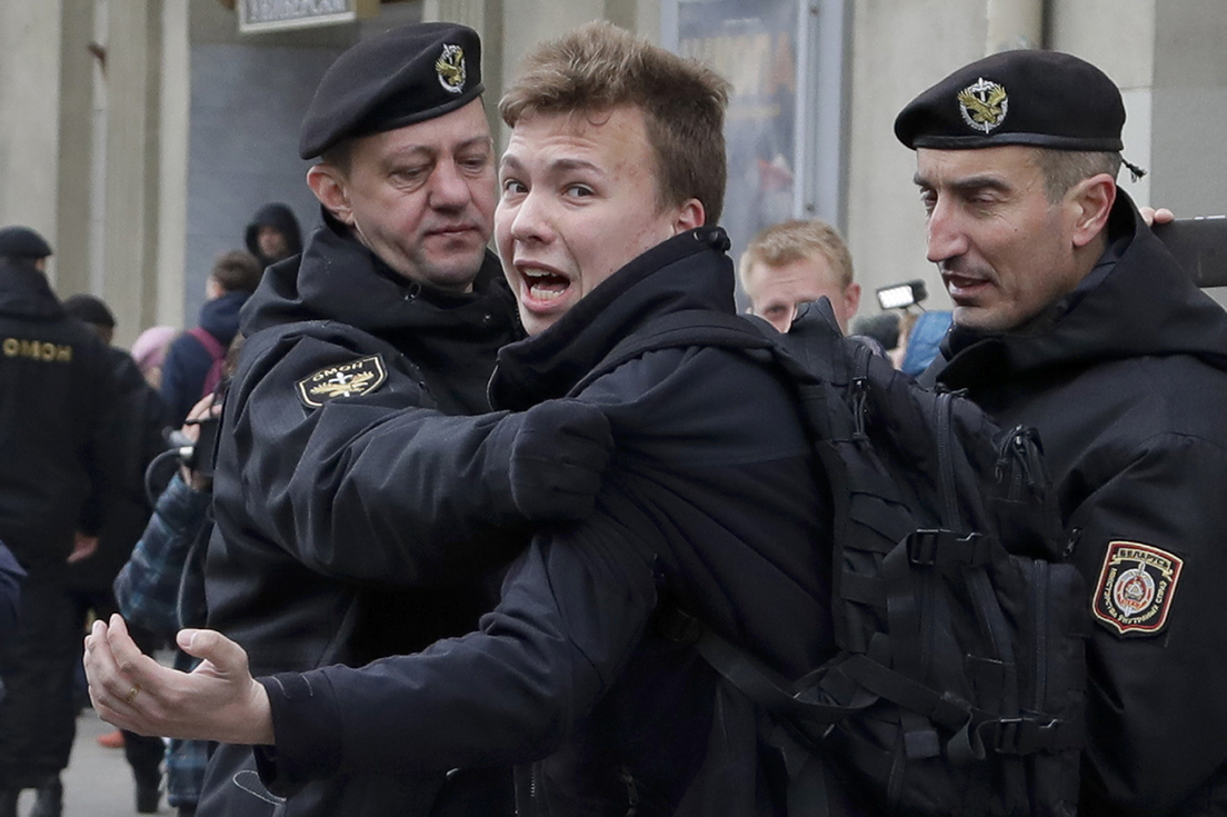 - El periodista fue detenido el 23 mayo, después de que una amenaza de bomba —que luego no se confirmó— provocara que el avión de Ryanair, en el que Protasévich y su novia viajaron de Atenas a Vilna, aterrizara de emergencia en Bielorrusia