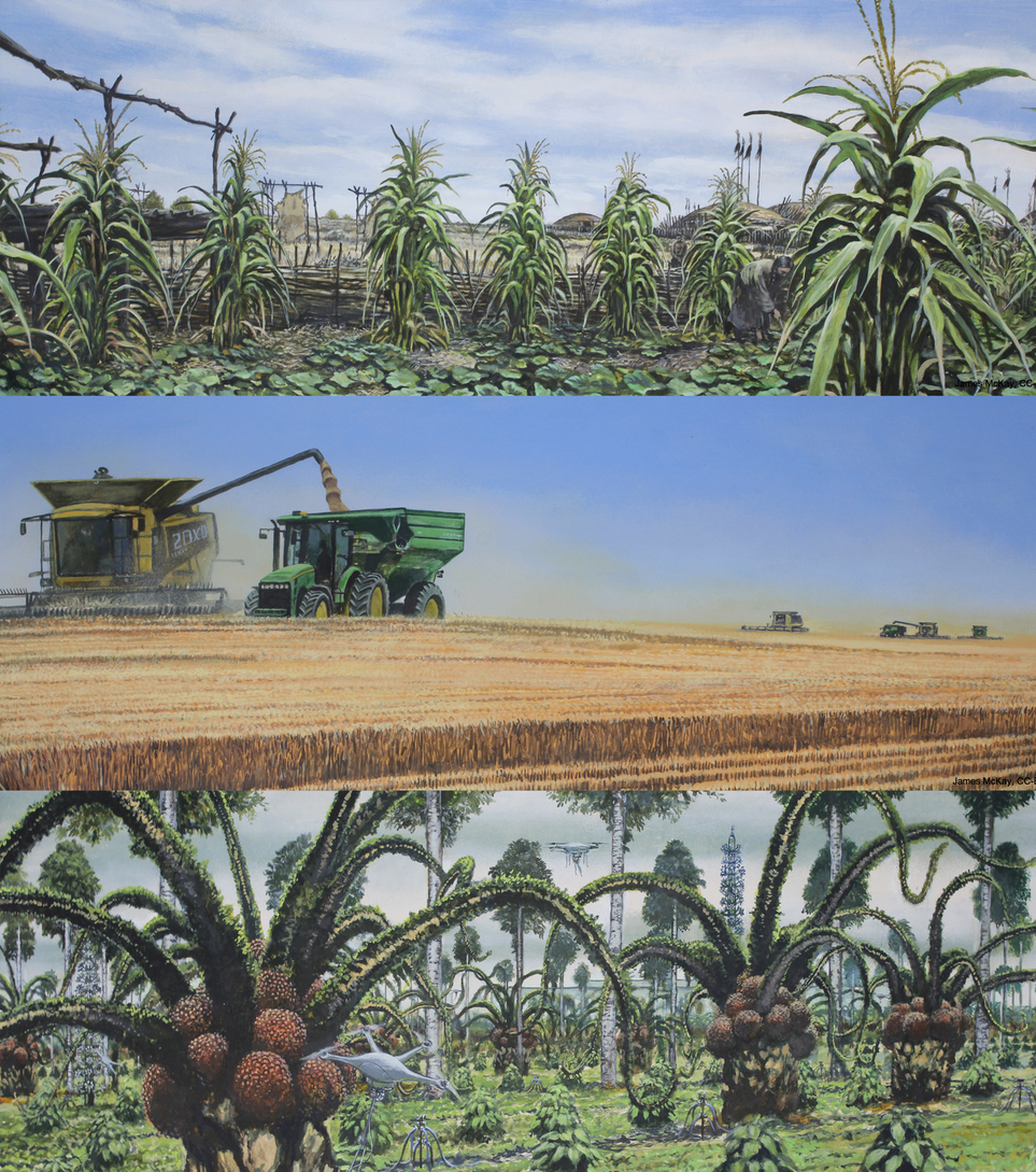 Por otra parte, lugares ricos en la producción de cereales como el medio oeste de los EE.UU. se volverían mucho más húmedos y cálidos, lo que obligaría a sus habitantes a adaptarse a una agricultura de clima tropical, con especies basadas principalmente en palmas productoras de aceite.