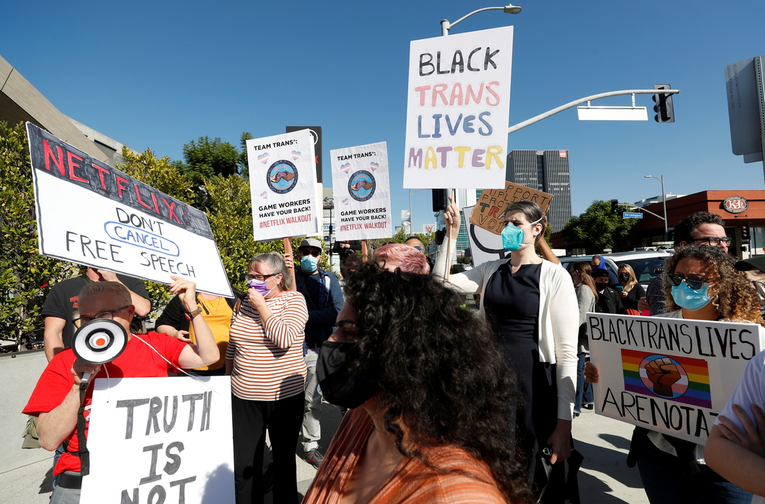 Aproximadamente 100 personas se reunieron este miércoles cerca de la sede de Netflix en Los Ángeles para apoyar la huelga de un grupo de empleados de la compañía de 'streaming', provocada por un especial del famoso cómico Dave Chappelle que incluye comentarios contra personas transgénero, recoge Reuters.