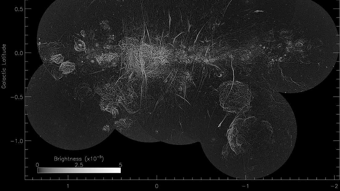 Al reunir un mosaico de 20 observaciones separadas del telescopio MeerKAT, un equipo de astrónomos logró construir una imagen del centro de nuestra galaxia con una claridad y un detalle sin precedentes, que reveló los 'hilos'.