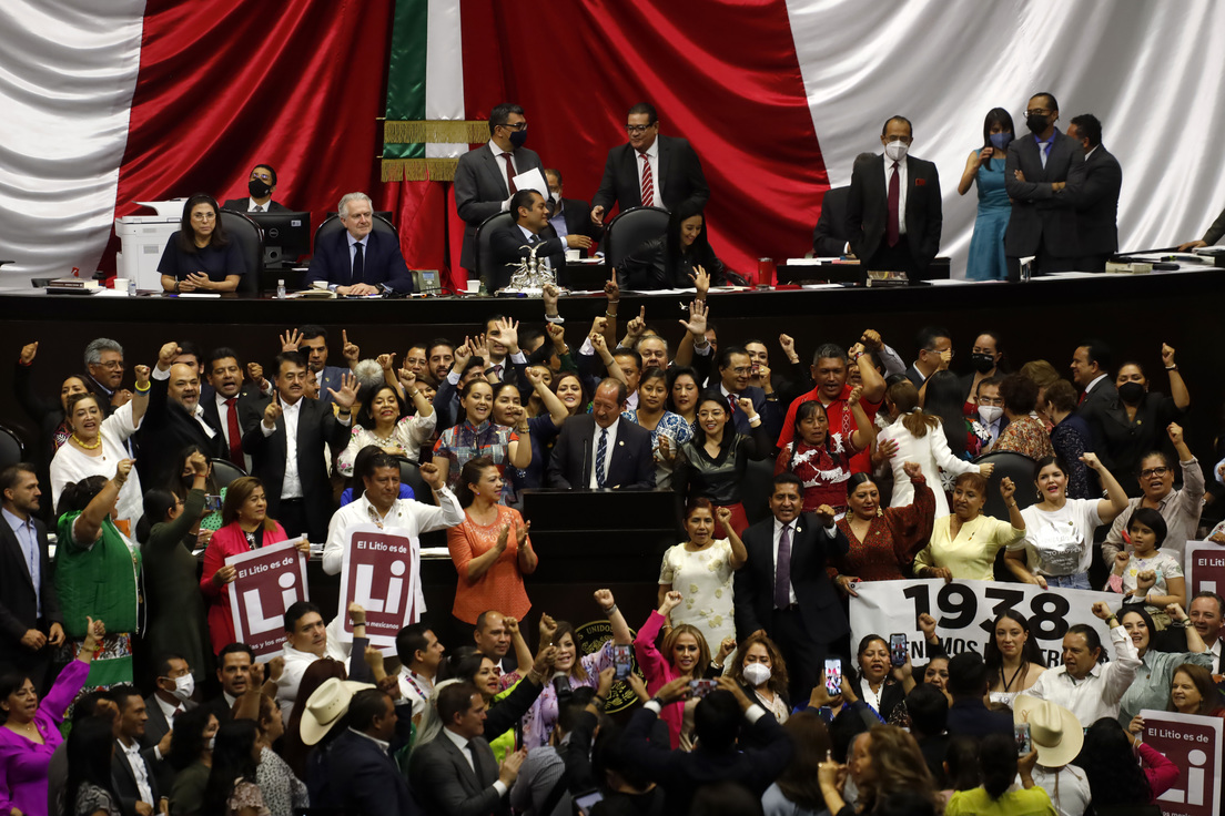 México cuenta con 1,7 millones de toneladas de reservas identificadas de litio. En abril pasado, el Congreso aprobó diversos cambios a la Ley Minera, propuestos por el oficialismo, para reconocer al recurso natural como patrimonio de la Nación, declarando "de utilidad pública" su exploración, explotación y aprovechamiento, acciones que —se estableció— quedarían a cargo exclusivamente del Estado, a través de un organismo descentralizado.