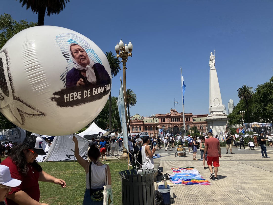 La de este jueves fue la marcha número 2.329. Fue, también, la primera en la que Hebe ya no estuvo. O sí. Porque su rostro arrugado y enmarcado por el pañuelo quedó plasmado en todas partes con un mensaje repetido: "¡Gracias, Hebe!".