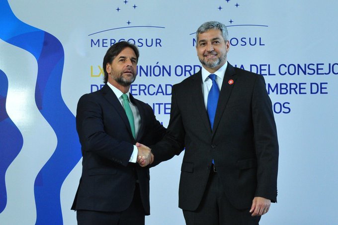 El presidente de Uruguay, Luis Lacalle Pou, como anfitrión, fue el encargado de abrir la cumbre, que se dio en medio de tensiones de ese país con el resto de los socios del organismo debido al pedido que hizo Montevideo, de manera individual, de ingresar al Tratado Integral y Progresista de Asociación Transpacífico (TPP11) o CPTPP.