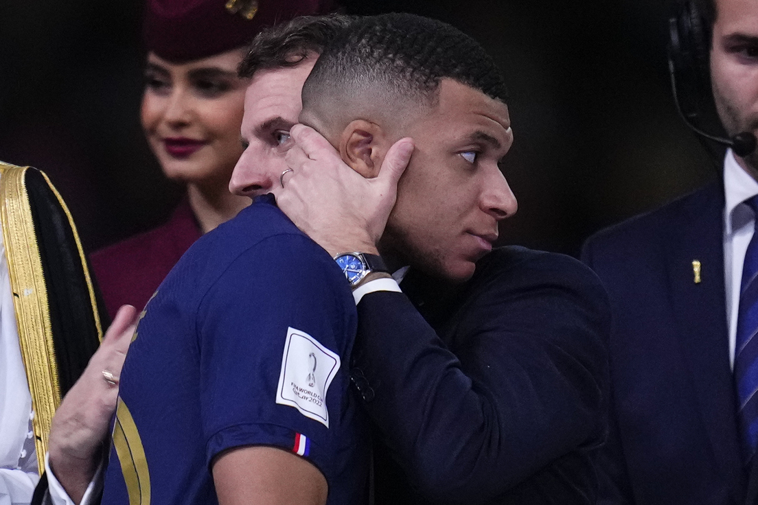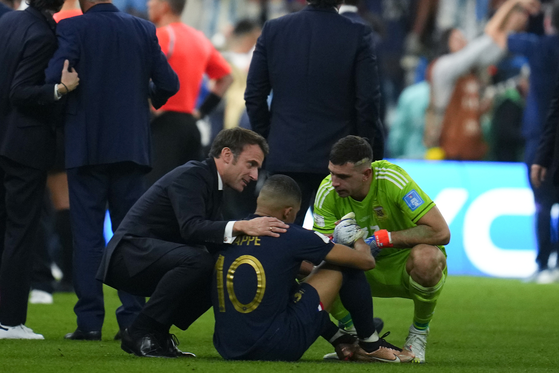 El presidente francés, Emmanuel Macron, consoló al delantero Kylian Mbappé después de que la selección gala perdiera ante Argentina la final del Mundial de Catar 2022.
