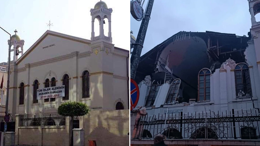 La Catedral de la Anunciación de la ciudad de Alejandreta, también conocida como la la iglesia católica de Alejandreta, quedó en ruinas. El edificio original fue construido hace más de 150 años por la Orden de los Carmelitas.