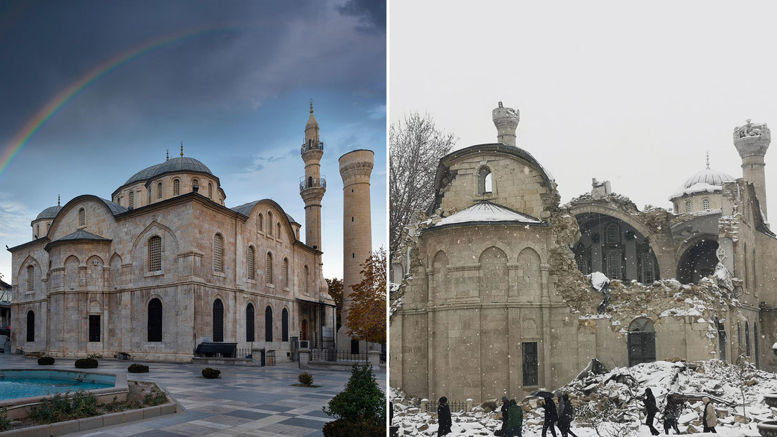 En la ciudad turca de Malatya, el sismo destruyó la mezquita Yeni, que tiene más de 100 años de historia y representa un símbolo de la localidad, así como también arrasó con un importante hotel, el Avsar, y un gran edificio de apartamentos, el Trend Garden Residence.