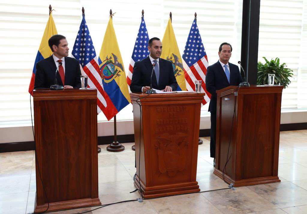 "A medida que América Latina y el Caribe gira hacia gobiernos antiestadounidenses de izquierda, Ecuador sigue siendo un aliado estratégico e importante tanto para nuestro país como para la estabilidad de nuestra región", dice una nota de prensa de la oficina de Rubio, publicada tras el encuentro.