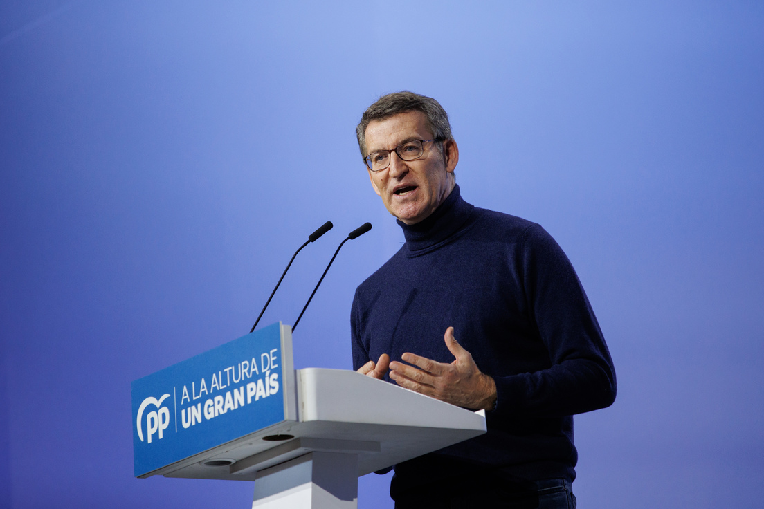 Al aludir a la formación liderada por Alberto Núñez Feijóo, a quien las encuestan colocan como partido más votado, el mandatario dijo: "Hay dos palabras que definen al PP durante esta legislatura: bloqueo y deslealtad institucional".