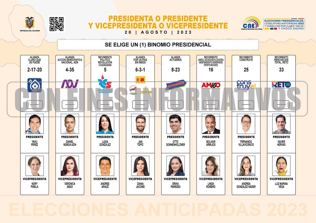 Además de González, Sonnenholzner, Pérez, Villavicencio y Hervas, en las papeletas de la elección presidencial también estarán otros tres binomios: