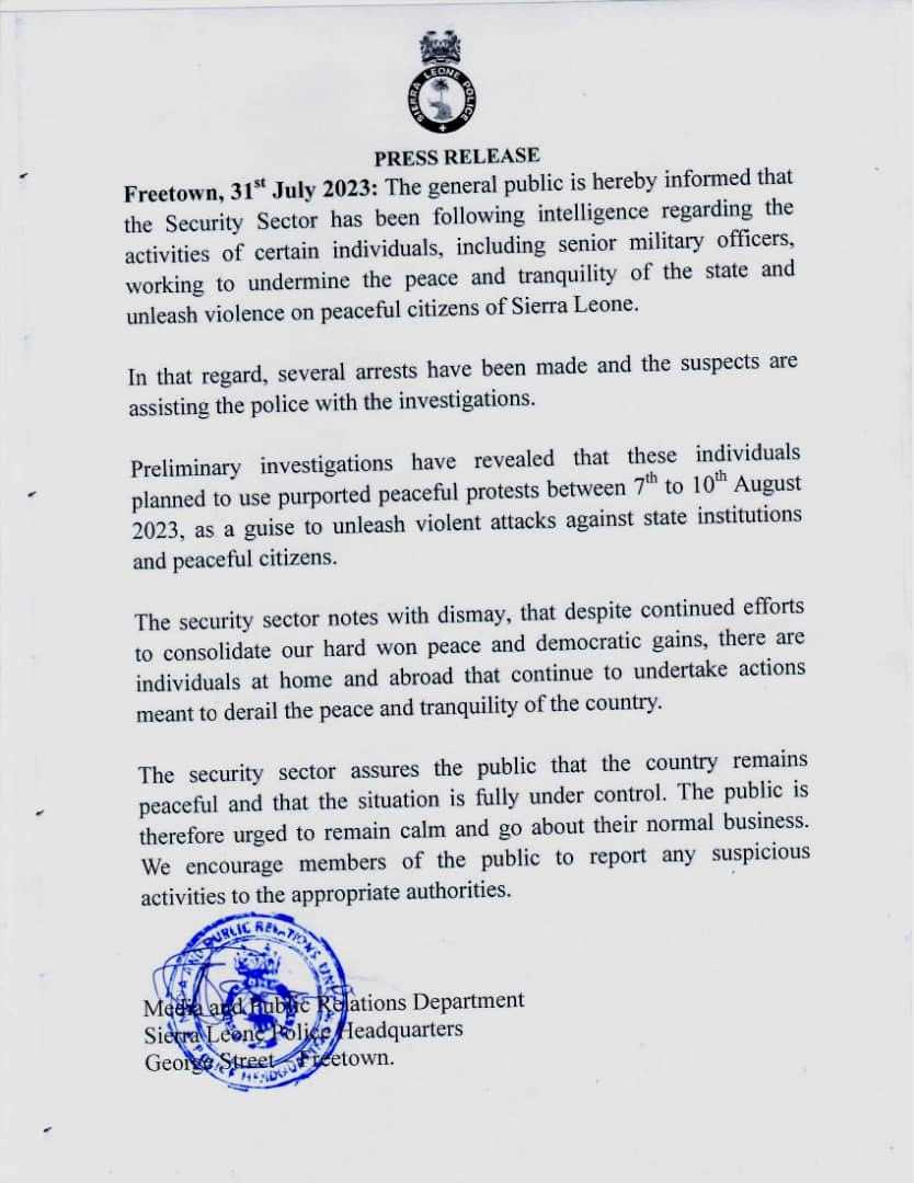 El país celebró a finales de junio elecciones presidenciales en las que salió vencedor el actual jefe de Estado, Julius Bio. Sin embargo, sus oponentes denunciaron que los resultados de los comicios fueron falsificados.