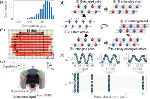 Jian-Wei Pan, con más de 10 años de experiencia en el entrelazamiento de átomos, ya había entrelazado con éxito pares de átomos en un sistema que contenía más de 2.000 átomos de rubidio. Ahora, su equipo científico utilizó una red óptica de rayos láser bidimensional con dos ubicaciones de captura en cada sitio de la red, conocida como superred óptica. Con ella y un microscopio cuántico de gases y moduladores de luz espaciales pudieron extender su entrelazamiento a grupos más grandes de átomos.