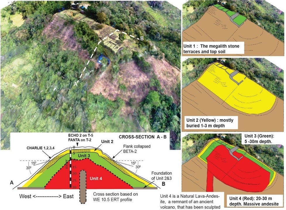 Un equipo multidisciplinario de investigadores indonesios reveló detalles acerca de una edificación piramidal gigante, escondida debajo de una ladera del monte Padang, en Java Occidental, que pudiera ser una de las estructuras megalíticas más antiguas jamás construidas por la humanidad y potencialmente la pirámide más antigua del mundo.