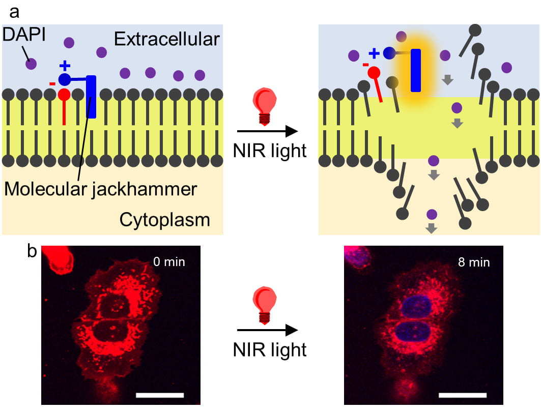 Los martillos neumáticos moleculares son moléculas de aminocianina, una clase de tintes sintéticos fluorescentes utilizados para imágenes médicas. "Estas moléculas son tintes simples que la gente ha estado usando durante mucho tiempo", comentó Ciceron Ayala-Orozco, científico investigador de Rice y autor principal del estudio.
