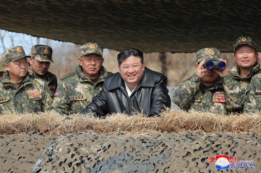 El líder de Corea del Norte, Kim Jong-un, dirigió este jueves desde un puesto de observación el ejercicio de tiro de artillería de las grandes unidades combinadas del Ejército Popular de Corea, informa la agencia KCNA.