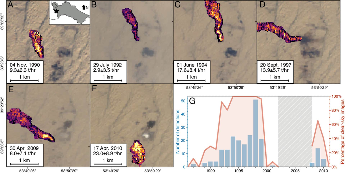 Sin embargo, un reciente estudio concluyó lo contrario. Un equipo de científicos de las universidades de Washington y de Harvard (EE.UU.) utilizaron métodos de IA para analizar imágenes históricas del satélite Landsat 5 y cuantificar las emisiones de metano en Turkmenistán, una exrepública soviética con una activa producción de petróleo y gas, desde 1986 a 2011.