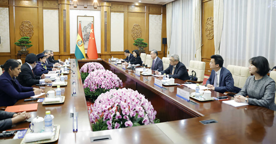 De acuerdo con Wang, China y Bolivia son "tradicionalmente amigos y ambas partes siempre se han entendido y apoyado mutuamente", y especialmente en los últimos años, las relaciones entre los dos países "se han desarrollado positivamente, lo que ha contribuido a la revitalización del proceso de desarrollo e industrialización de Bolivia".