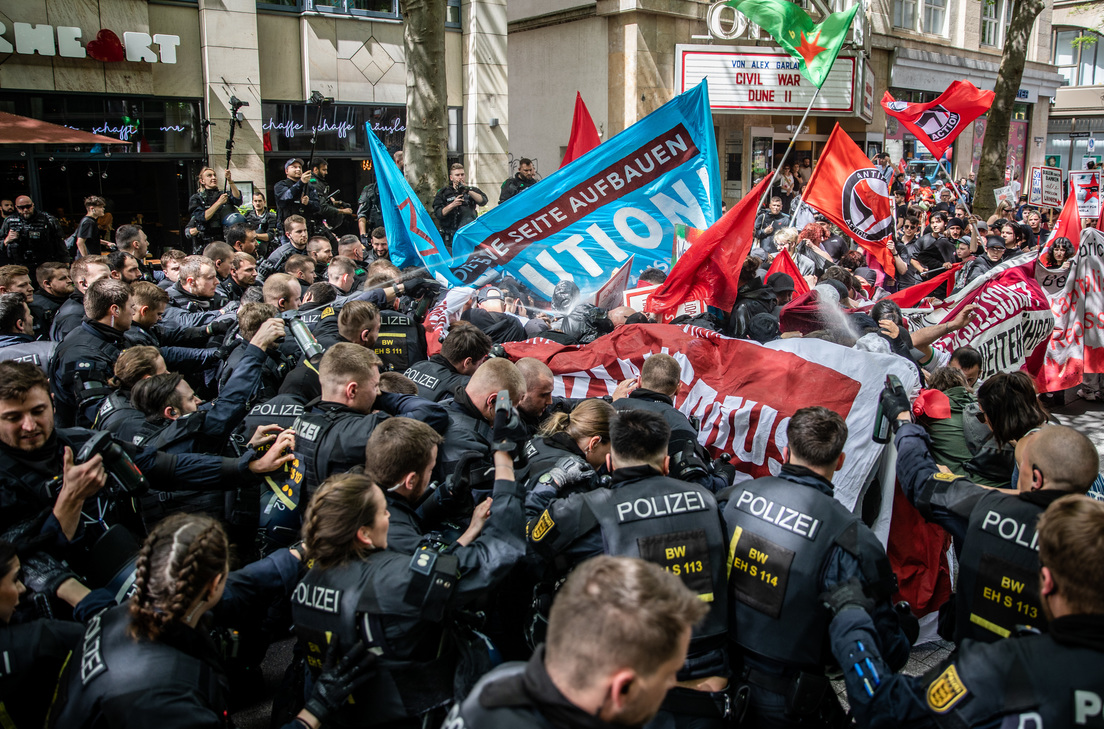 La Policía de Stuttgart comunicó a través de su cuenta en la plataforma X que algunos agentes desplegados en la zona de la manifestación fueron atacados. En respuesta, los agentes emplearon espray de pimienta y porras.