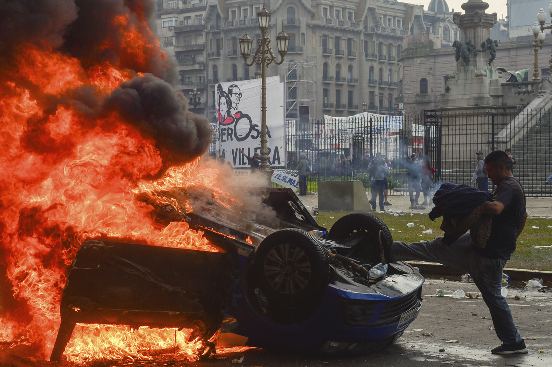Un vehículo fue incendiado durante la tarde de este miércoles en medio de las protestas que se realizan contra el proyecto de Ley Bases en las inmediaciones del Congreso de Argentina, en Buenos Aires, la capital del país.