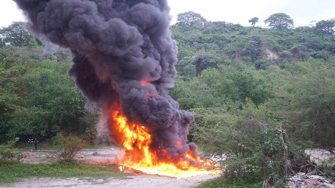 El alijo fue interceptado en alta mar a más de 1.500 km al suroeste de El Cordoncillo. La incineración se realizó en Changallo y el valor comercial de la droga se estimó en 67.512.786 de dólares.
