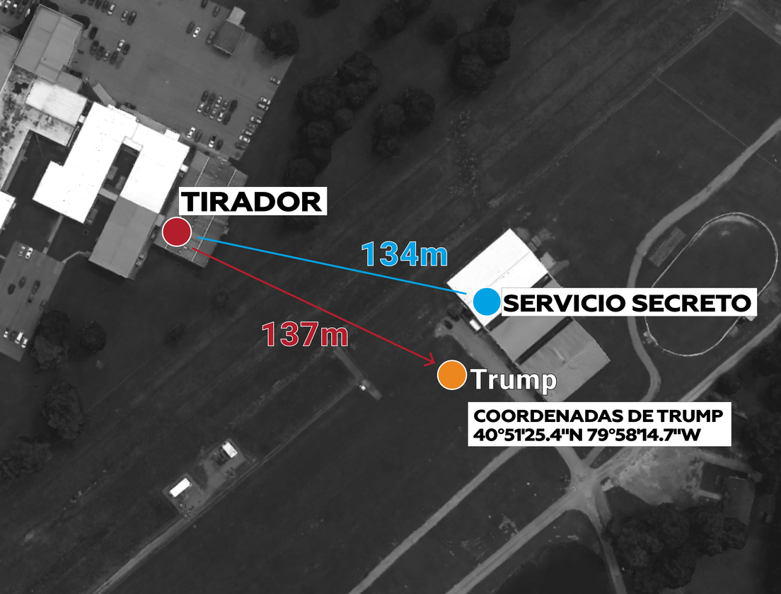 Asimismo, observó que un rifle AR-15 puede alcanzar las 200 yardas (182 metros), es decir, dentro del radio en donde se encontraba el escenario de Trump.