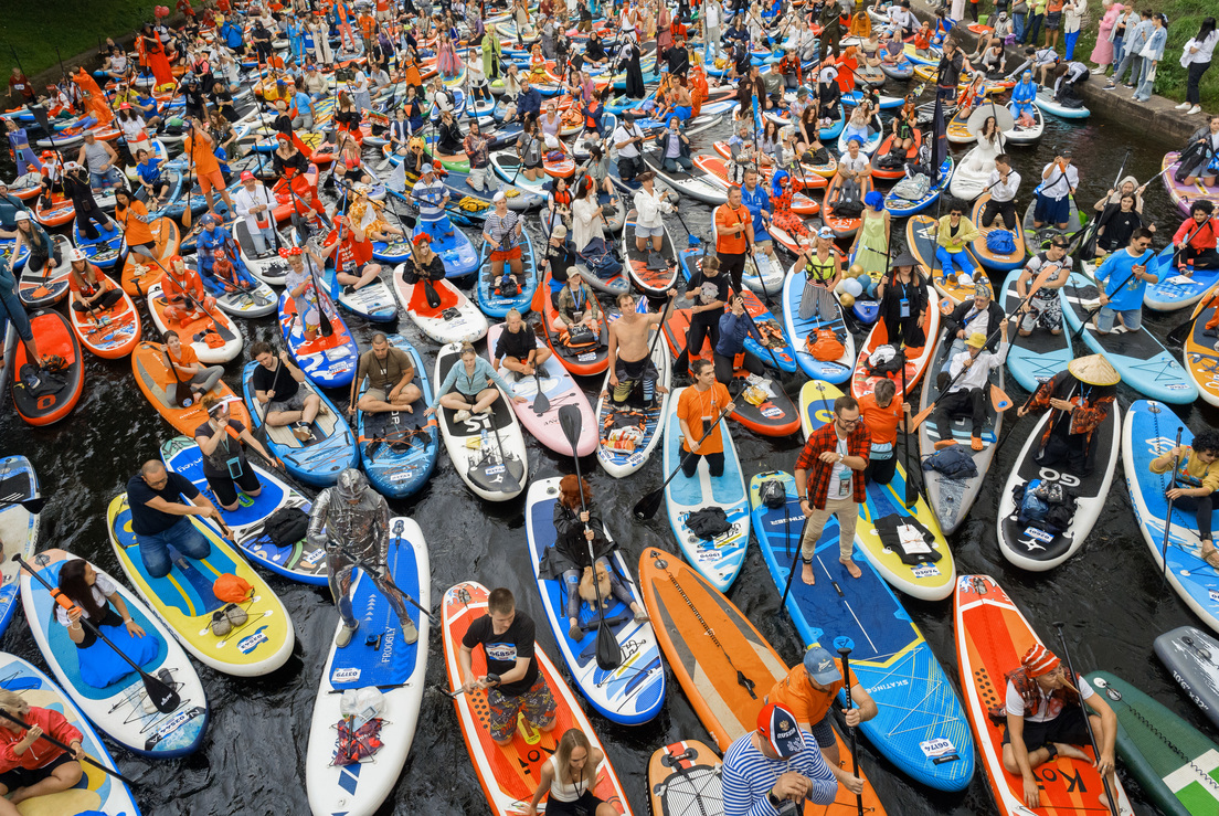El evento también acogió el primer concierto cómico sobre el agua. "Por alguna razón no había pensado antes que las siglas SUP significan Stand Up Paddleboard, (traducido literalmente del inglés como tabla de surf de pie). Y puede combinarse con el stand-up como género cómico", señaló el cómico Guram Demídov. El evento también registró un récord insólito: los participantes organizaron la mayor travesía a nado en padelsurf multipersonal. En la línea de meta, la acción de los deportistas aficionados fue registrada por el Libro Ruso de los Récords.