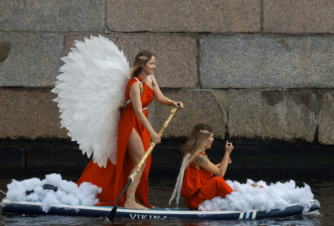 Más de 10.000 participantes de 14 países del mundo, además de Rusia, y de más de 250 ciudades recorrerieron una ruta de 8 kilómetros. Ni siquiera la lluvia y las tormentas impidieron que los participantes lucieran vistosos disfraces y emprendieran un viaje por los ríos y canales del centro histórico de la capital nórdica rusa.