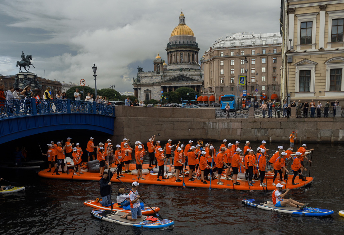 El mayor festival internacional de padelsurf, Fontanka SUP, se celebró este sábado en la ciudad rusa de San Petersburgo.