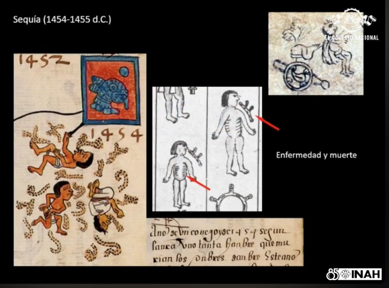 "En un primer momento, el Estado mexica intentó mitigar sus efectos abriendo las trojes reales para redistribuir el alimento entre las clases más necesitadas, al tiempo que realizó sacrificios multitudinarios de niños en el Templo Mayor para calmar la furia de los tlaloques", indicó el especialista, en referencia a las criaturas mitológicas encargadas de repartir la lluvia en vasijas.