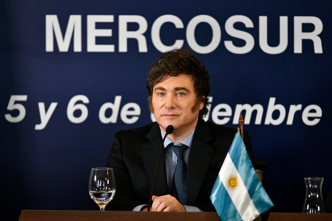En los medios había expectativa sobre el discurso de Milei. Mientras algunos apostaban a que patearía el tablero de negociaciones, otros consideraban que podría abandonar el bloque regional debido a sus fuertes críticas.