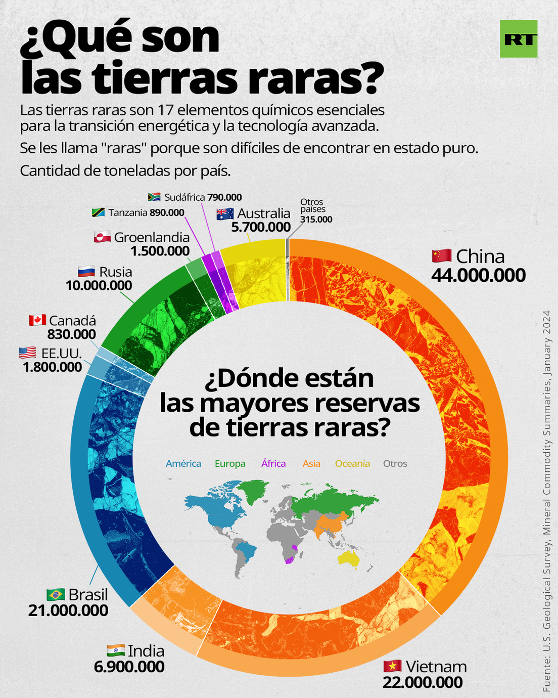 - Ucrania cuenta con una amplia reserva de tierras raras. Según la ONU, el país posee yacimientos de 21 de los 30 elementos de tierras raras, definidas por la Unión Europea como "materias primas críticas". Entre ellos figuran el cobalto, el escandio, el grafito, el tantalio, el niobio y otros. Las tierras raras son esenciales para muchas industrias de alta tecnología, como la electrónica, la energía verde y la medicina.