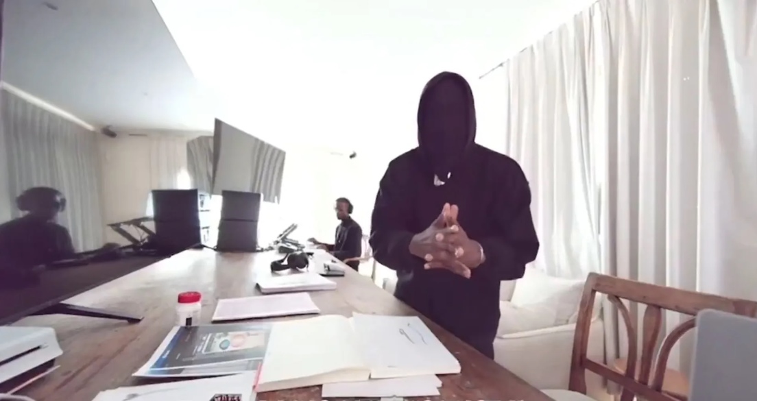 Con una máscara negra puesta, el rapero hizo un fuerte reclamo lleno de gritos e insultos, lamentando que casi no puede ver a sus hijos y acusando a Kardashian y su familia de quitarle injustamente sus derechos como padre.