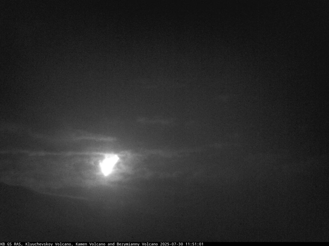 "En este momento, el [volcán] Kliuchevskói se encuentra en erupción", reza el mensaje, que va acompañado por una foto captada a las 23:51 (hora local) por una cámara instalada en la estación sismológica local.