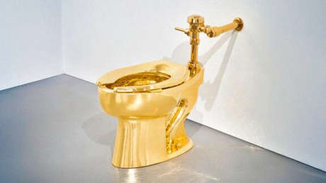 La escultura 'America' lleva un precio no inferior al valor del material con el que fue hecho (101,2 kilogramos de oro sólido de 18 quilates) y es otra obra del controversial artista italiano Maurizio Cattelan.