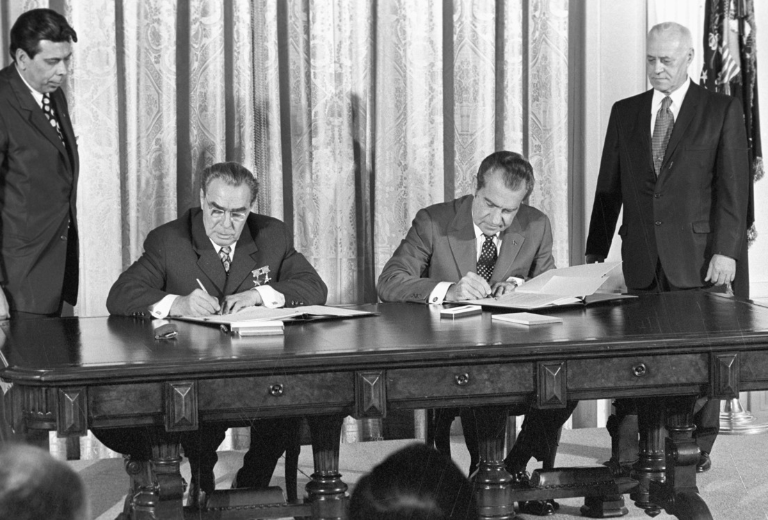 El 26 de mayo de 1972, el presidente estadounidense Richard Nixon y el secretario general Leonid Brézhnev firmaron en Moscú el Tratado sobre Misiles Antibalísticos (ABM, por sus siglas en inglés) y el Acuerdo Provisional sobre armas ofensivas estratégicas.