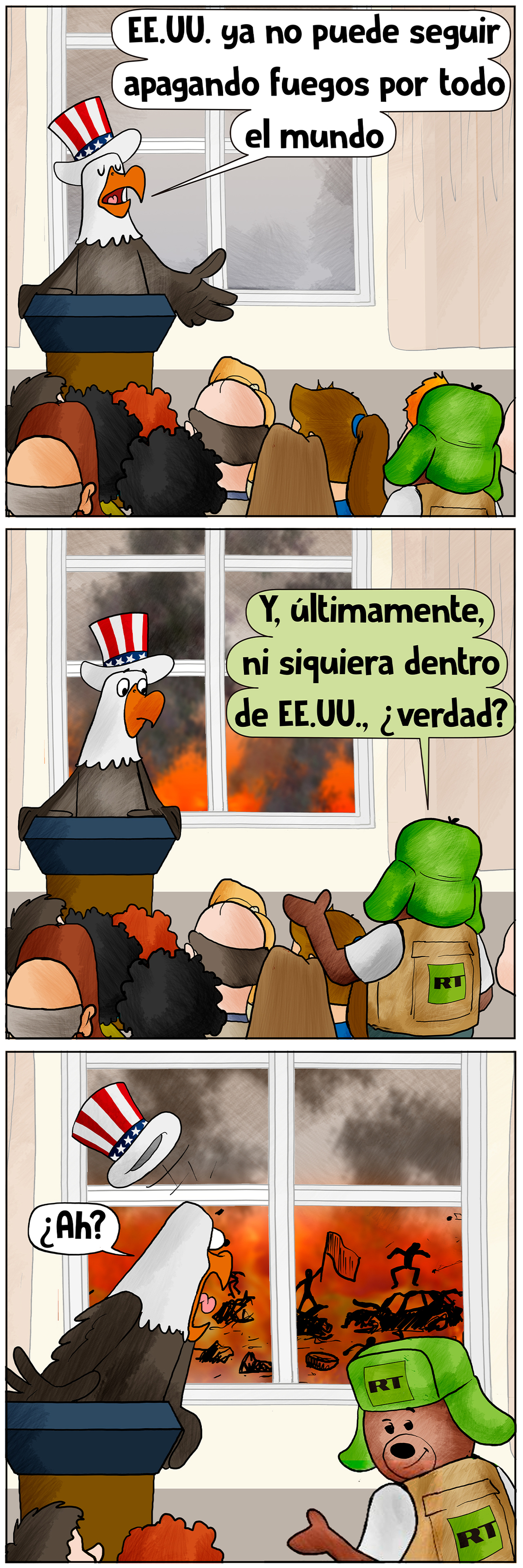 ¡Qué coincidencia! Justo cuando EE.UU. dice que ya no apagará fuegos en el mundo (en verdad nunca lo hicieron, pero ese es otro tema) se les prende tremendo incendio en casa.