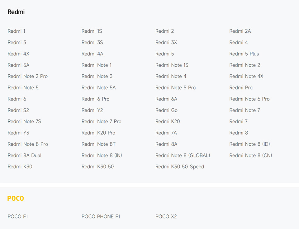 En los últimos meses, la compañía ha incluido una serie de dispositivos lanzados en 2019 y 2020, como los de la serie Redmi 8, uno de los modelos más vendidos por la firma, y la Redmi K30.