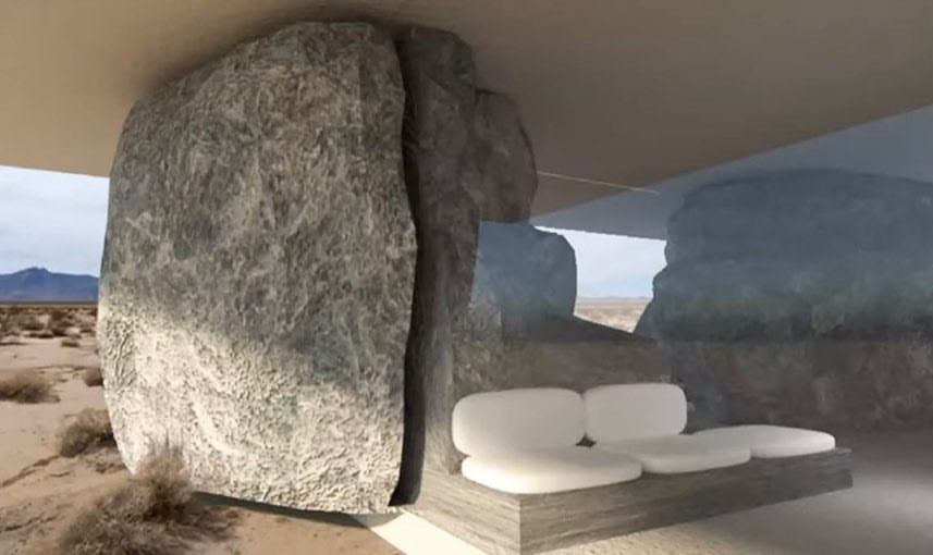 En 2021, Censori y sus compañeros materializaron uno de sus proyectos en un parque nacional de California. "A pesar de su estructura de aspecto megalítico, [la casa] mantiene un toque moderno gracias a las ventanas de cristal que van del suelo al techo, encajadas entre las gigantescas piedras, y al elegante mobiliario integrado en la roca", señala el medio.