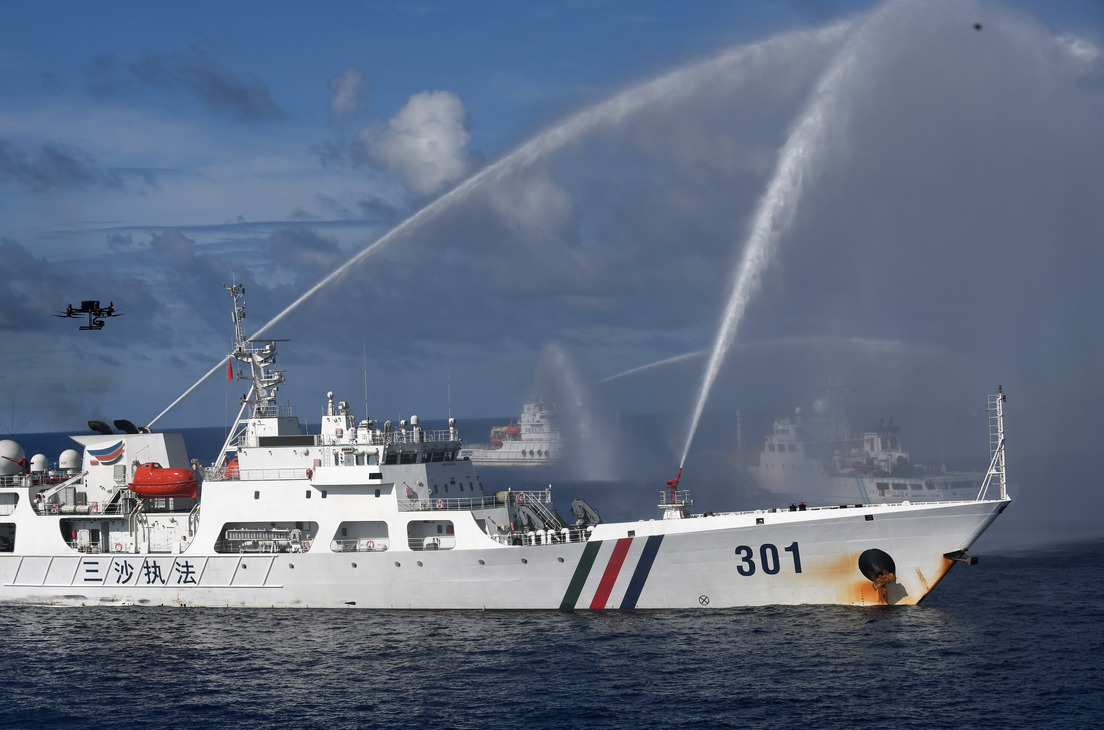 Asimismo, el Sansha Zhi Fa 301, barco patrullero de 3.295 toneladas equipado con cañones de agua, formó parte de los simulacros.