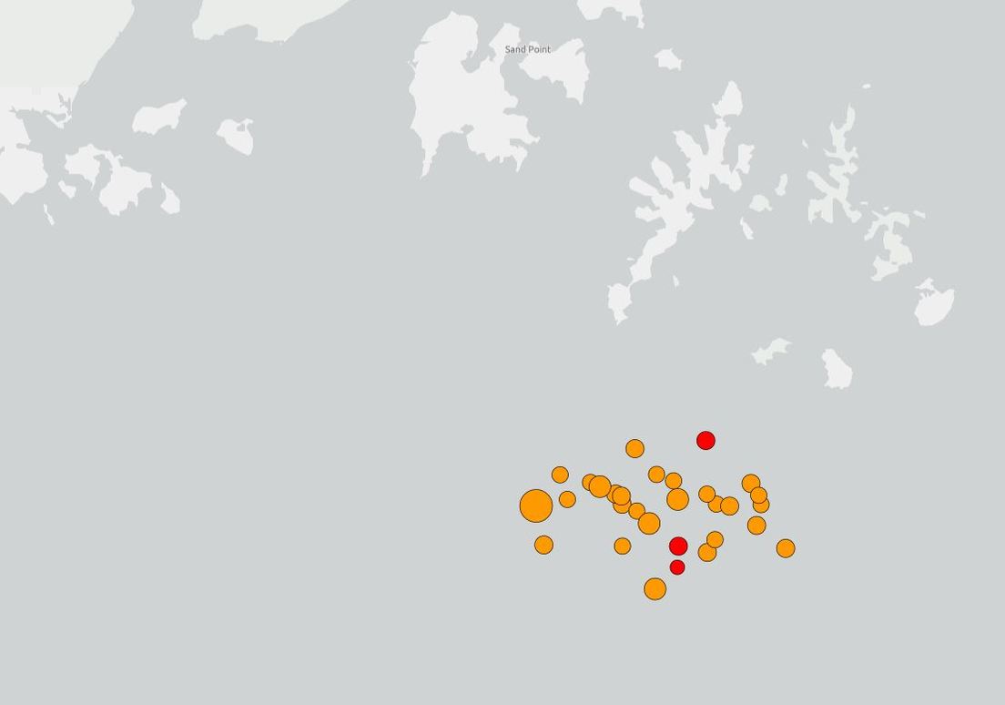 El epicentro del último movimiento telúrico, según datos del Servicio Geológico de EE.UU., se situó a 94 kilómetros al sur del puerto de Sand Point (Aleutianas Orientales, estado de Alaska), mientras que su hipocentro se registró a una profundidad de 35 kilómetros.